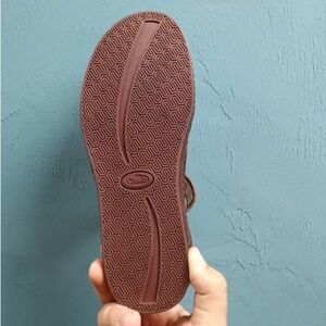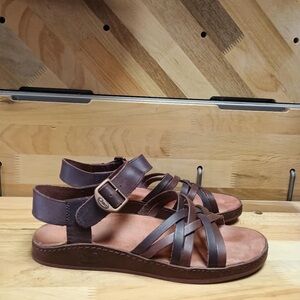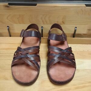 A supportive leather sandal with an adjustable backstrap. Has strong arch support, great for hiking, the beach, and everyday wear and use.