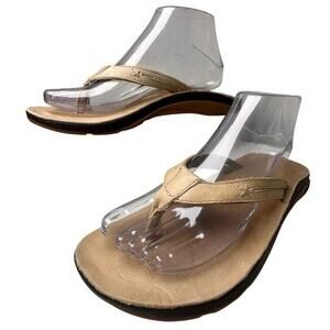 Chaco Flip Flop Shoes Women's Tan Blonde Leather Comfort Slip On Thong Sandal 10