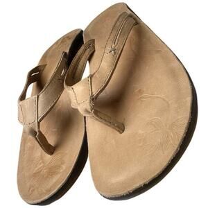Chaco Flip Flop Shoes Women's Tan Blonde Leather Comfort Slip On Thong Sandal 10 Vacation Floral Feminine Summer Momcore Festival Beach Pool