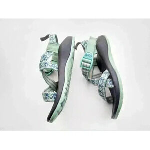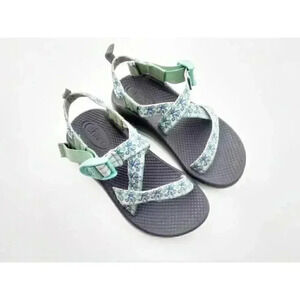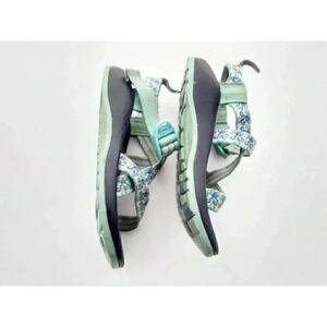 Chaco Girls Sport Sandals Blue Green Floral Buckle Open Toe 1