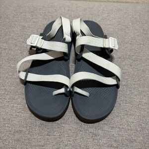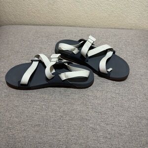 Chaco Gray and White Strappy Sandals with Adjustable Slingback