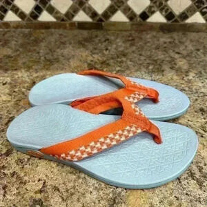 Chaco Ladies Gray Flip Flops with Orange Strap Women’s size 6 Summer Sandals