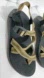 Men's Chaco sandals with black soles and tan straps. Size 9M. Perfect for hiking, boating, and relaxing at the beach or by the lake. Gently used condition. Minimal wear. Straps and buckles in good condition. Lots of life left. See pictures for condition. I do my best to inspect and disclose flaws. There may be minor flaws that I missed. Sold as is. Measurements are in photo.