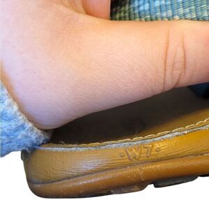 Size 7. In overall great preowned condition- these just have a minor white scuff on the toe that is pictured. Substantial sole.