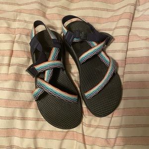 Chacos- black sole & rainbow strap. Women’s size 9.