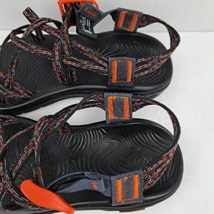 Chaco Sandals Double Strap Toe Loop. Size 6. Double straps in orange, grayish light blue and black. Toe loop for secure movement. Adjustable straps.