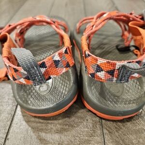 Chaco sandals with vibrant orange and gray straps. Size 12 kids