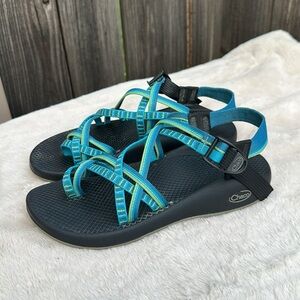 Chaco Turquoise and Black Adventure Sandals Size 8