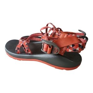 Keywords: Chaco sandals, women's sport sandals, adjustable sandals, hiking sandals, outdoor footwear, size 5 sandals, red and black sandals, comfortable sandals, durable sole.