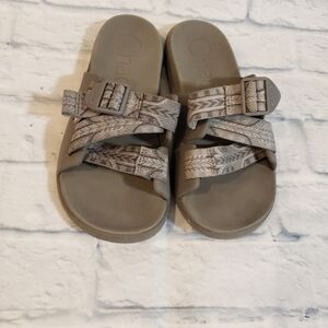Chaco Womens Size 7 Chillos Gray & Striped Strap Performance Sandals Gently Used