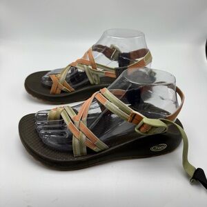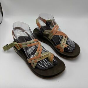 Chaco Women's ZX2 Classic Athletic Sandal Womens Size 8 Green coral/Orange Hiking Shoe. Good used condition.