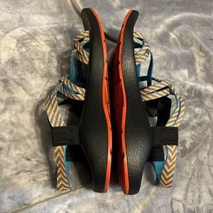 Vibrant strappy sandals with a multicolor design. The Chacos are in great condition, perfect for summer activities!