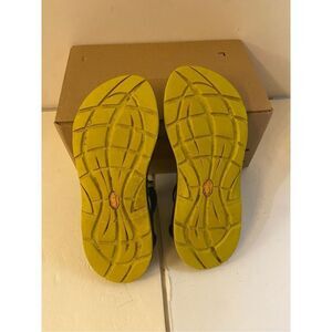 Chacos green straps size 9 used. vibram soles. These have been worn a lot.