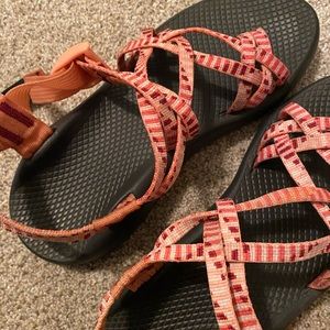The tread on the bottom is almost perfect, the most wear is on the straps and they’re just a bit dirty. They’re a size 8, and I would say they fit pretty true to size.