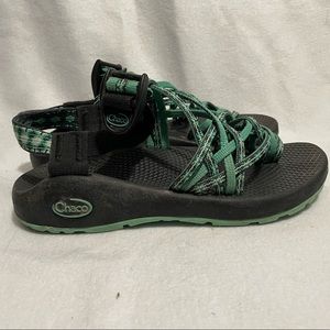 3 strap chacos. Turquoise, blue patterned