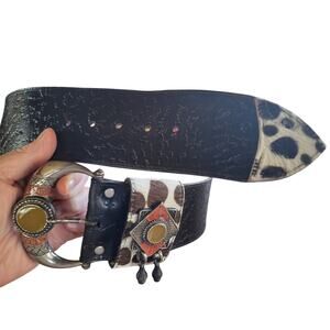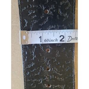 Chad Calvin Design Dark brown belt. This belt is superb quality! Heavy genuine leather and cowhide. Large, unique, stainless steel design buckle with hanging steel trinkets. The end of the buckle also has cowhide tip. Like new condition with no scratches, dents, flaws. Handmade by designer. The four holes measured from the heel (where the brown belt strap starts from the buckle) are approximately 26", 27", 28", 29". The total length of the belt is 35" including the buckle and 33" not including the buckle. The buckle is 2"W x 3.25" L. Please refer to a belt sizing chart because I will not take a return on this item. I wear size 27/28W jeans and this only touches from buckle end to tip end Unfortunately!! :) So my total belt length is 41" (including buckle the same size as this one. This belt should definitely fit a person who wears a XS or Small jean. Please make sure to measure! Just in case, there is always the old school way of adding another hole to your favorite belt, just in case:)