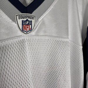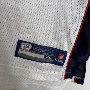 This product is a Chad Ochocinco New England Patriots authentic Reebok jersey in size XL. It is officially licensed by the National Football League (NFL), making it a genuine fan apparel. The jersey features the player's name and is in the team's colors of white and blue, perfect for showcasing team spirit during the regular season. Made for men, this jersey is a must-have for fans of Chad Ochocinco and the New England Patriots.