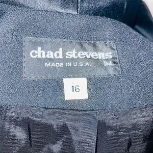 The blazer is made by the brand Chad Stevens and is embellished with rhinestones, adding a touch of glamour to any outfit. It is perfect for formal occasions or for adding a touch of elegance to everyday wear.