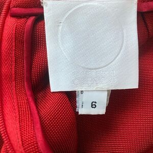 Introducing a stunning Crimson Red Dress by Chado Ralph Rucci. This dress is made of high-quality Viscose Knit material with a shimmery finish, making it perfect for any special occasion. It features a beautiful Mock Neckline with a Zip Closure, Short Sleeves, and falls at Knee Length.