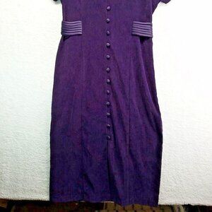 Chads Place Dress Womens 18 Dark Purple Faux Suede Satin Buttons Vintage