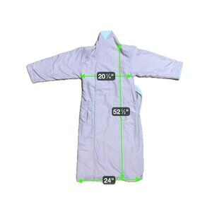 This Chadsworth and Haig pink long robe features a contrasting soft white collar and inner lining. Includes two large outer pockets, one inner pocket, and a removable belt for adjustable fit.