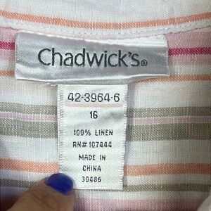 Chadwick’s 100% Linen Button Front Striped Shirt Top Women’s Size 16