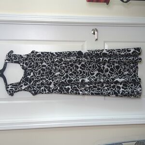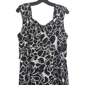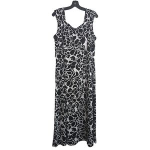 Chadwicks Black and White Sleeveless Floral Midi Dress 1X.