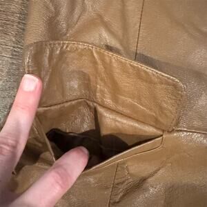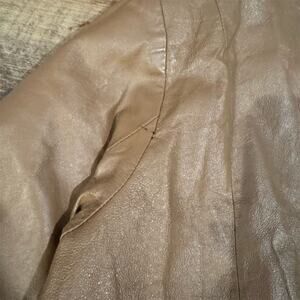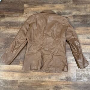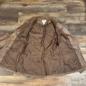 Keywords: Chadwicks, women's jacket, leather jacket, size 10, brown jacket, casual jacket, mid-length jacket, single-breasted, two-button, long sleeve, pre-owned, dry clean only, solid pattern, basic jacket, polyester lining.