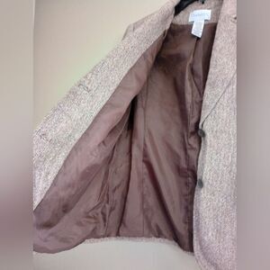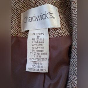 Chadwick's brown wool blend 2 button blazer women's size 8 petite. Faux pockets and lightly padded shoulders. Pre owned. Good condition. No holes No stains