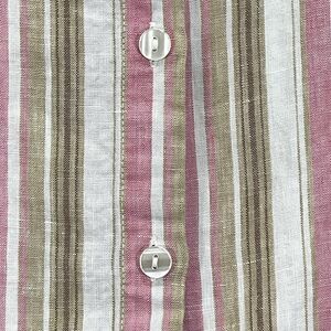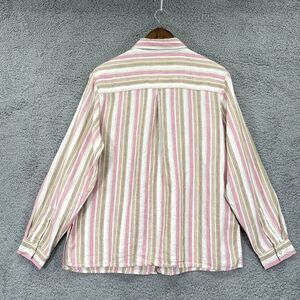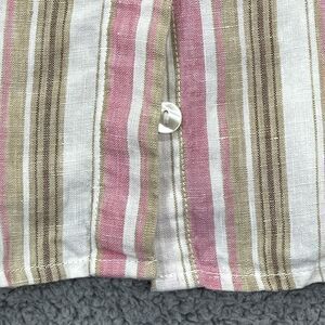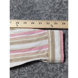 Chadwick's Button Up Top Women 14 Pink Brown Striped Long Sleeve 100% Linen