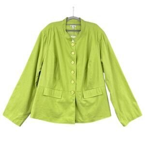 Chadwicks Classics Green Button Front Long Sleeve Collarless Jacket Size 24W