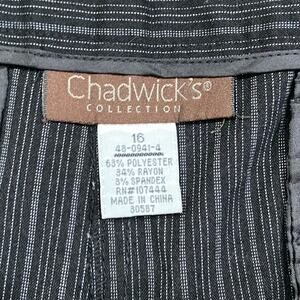 Chadwick’s Collection Black Pinstripe Trousers SZ 16 Wide Leg Flat Front Pants