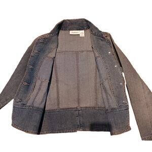 Chadwicks Denim Peplum Jacket Size 10 Button Front Hand Painted Teddy Bear