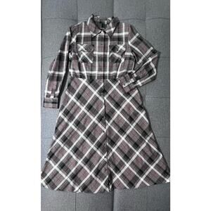 Chadwicks Dress Women Medium* Flannel Brown Gray/Red A Line Cottage Boho
