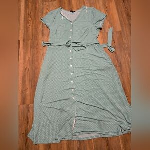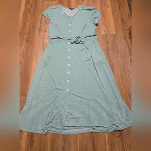 Chadwicks Green Midi Sundress with Flutter Sleeves and Peter Pan Collar