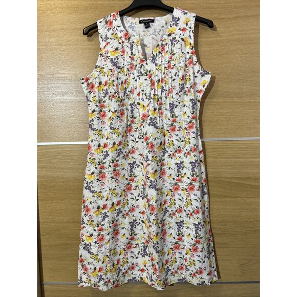 Chadwicks Linen Floral Garden Pintuck Pleating Sleeveless Dress Women’s Size MT