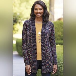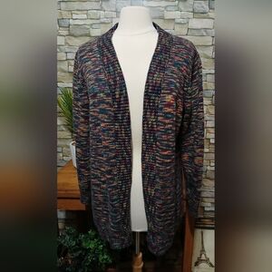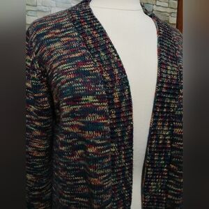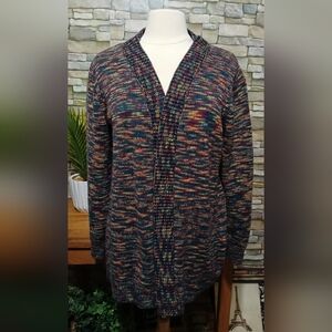 Chadwicks Marled Rainbow Chunky Cardigan Sweater Open Front Textured Knit XL