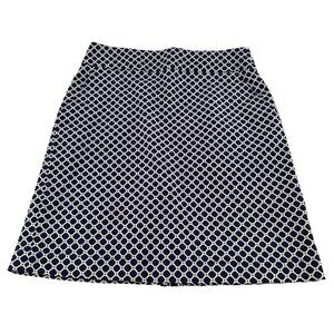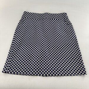 Chadwicks Of Boston 8 Geometric Print Navy White Cotton Blend Skirt Side Pockets