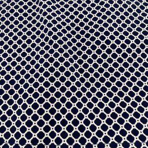 This stylish skirt features a geometric navy and white pattern in a durable cotton blend. Designed with functional side pockets and a tailored fit, it offers practicality and elegance for both casual and semi-formal settings.