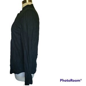 Chadwick’s Pintuck Linen Button Front Top. Size PM. Line, Rayon material. Black in Color. Button Up Front. With Pintuck details. Size MP. Lightly used and in great condition. Wrinkles from being in a tub.