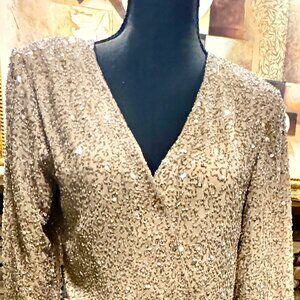 Chadwick's Stunning Gold Beaded Wrap Top Size 4 with 3/4 Sleeves