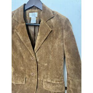 Chadwick’s Tan Leather Suede 2 Button Blazer Jacket Lined Sz 2 P. Hh