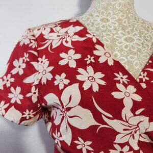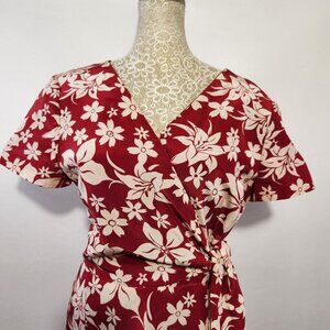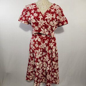 Chadwick’s Vintage SZ 10 Petite Red Floral Print 100% Silk Side Tie Wrap Dress