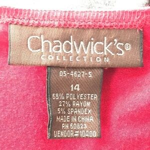 Chadwick's red, gray, black wide stripe dress with long bell sleeves.  It has a scoop.  Gently used...size 14...no flaws noted...see photos for care details.