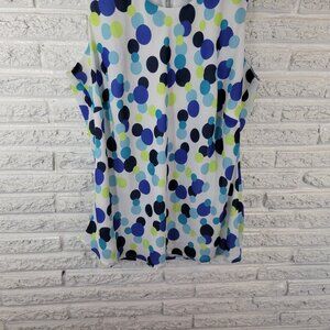 Chadwicks Women Top 1X Plus Tank Blue Green Polka Dots Lined GEO207XE