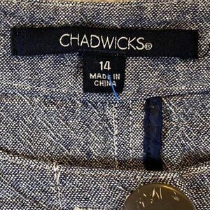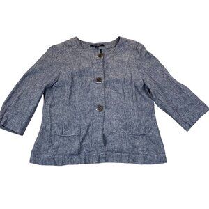 Chadwick's Women's Blazer Jacket Size 14 Linen Blend Blue Heather Button-Front