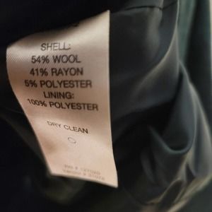 This Chadwicks woman's blazer is brand new. It has an overall length of 23" the chest is 42" and the sleeves are 24" inches. It is made out of a wool blend.