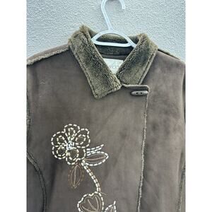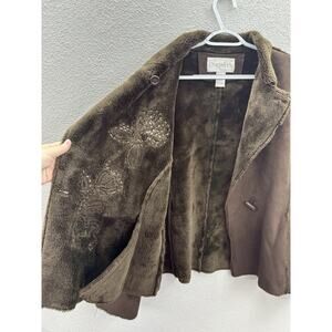 Chadwicks Womens Jacket Size Large Brown Suede Toggle Close Faux Fur Lined