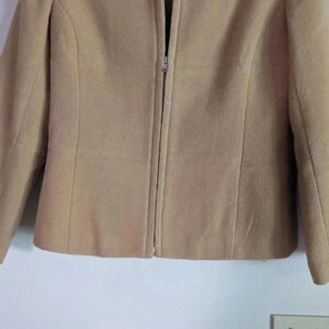 Chadwicks Women's Wool Blend Tan Blazer Jacket with round collar Size 4 Zip up