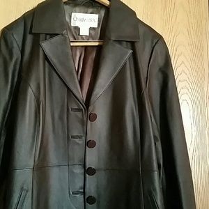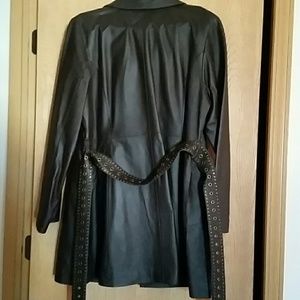 Brown leather 3/4 length coat with bronze grommet belt. Only worn a couple times, like new.
